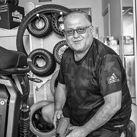 Giuseppe Natoli vende scooters para personas con discapacidad en Roquetas de Mar. Proveniente de Venezuela de ascendencia siciliana y afincado en Garrucha. ¿Cómo llegó hasta