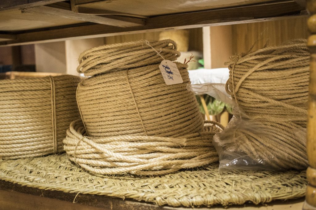 La galería ‘L’Atelier de Níjar’ es de fachada blanca encalada, tradicional, pero a través de su puerta se accede al universo propio de las artesanas. El “Bolón”, como lo llama Chloé, su creadora, es una gran urna de barro tamaño júpiter, un primer punto de fuga que se disipa con los móviles del techo. Los elementos revolotean colgados de las altas vigas de madera y enredan mi atención como en una tela de araña que me mece mimosa.